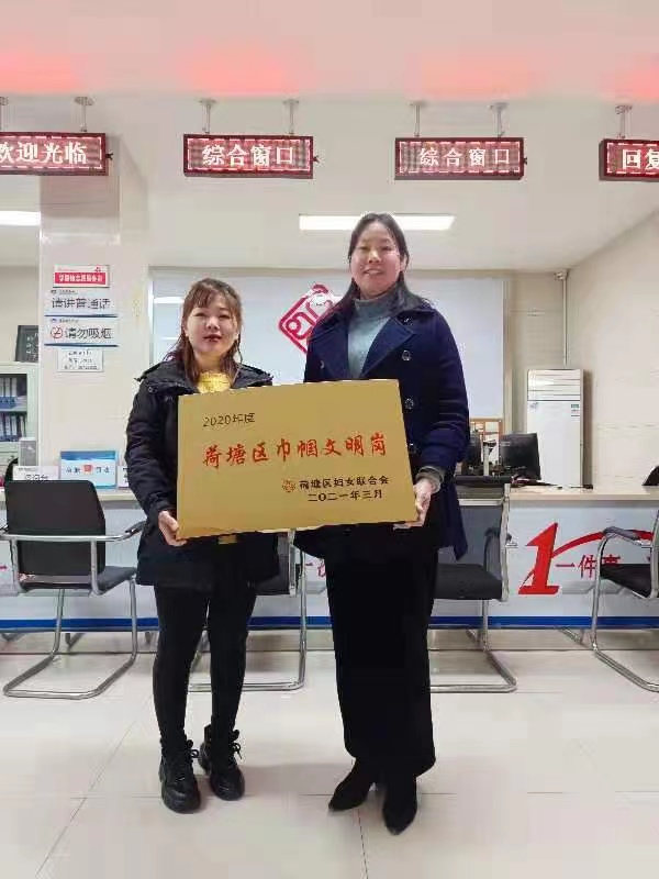 刘江岸为红旗村社区荣获"荷塘区巾帼文明岗"荣誉称号表示热烈祝贺,她强调,红旗村社区要以获得此项区级妇女工作荣誉为新起点再接再厉,开拓进取,再立新功。