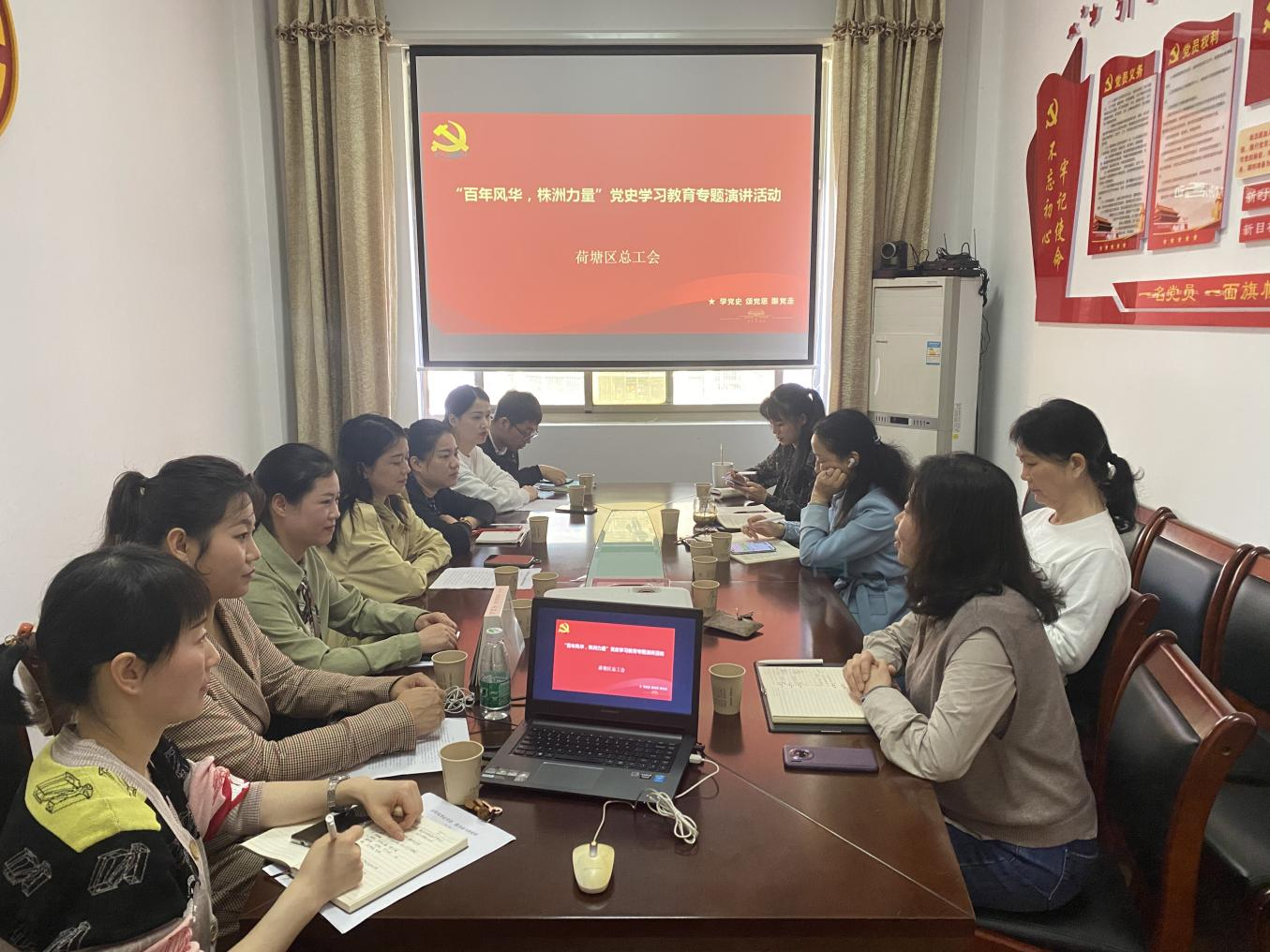 为迎接中国共产党成立100周年,深入开展党史学习教育,团结引领党员干部加强对党史和工运史的学习,提高自身综合素质,激发爱党热情,促进形成学好党史、用好党史的良好氛围,4月30日上午,荷塘区总工会组织开展“百年风华 株洲力量”党史学习教育专题演讲活动。