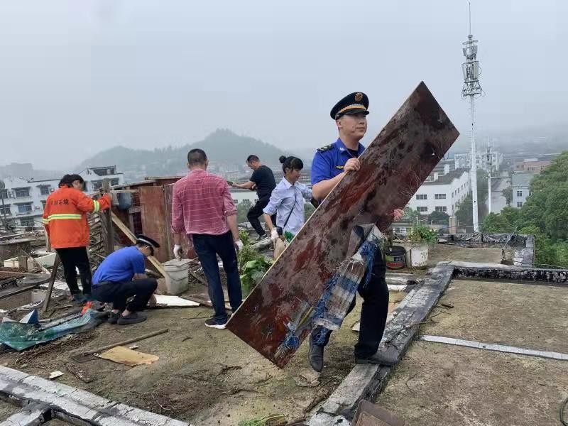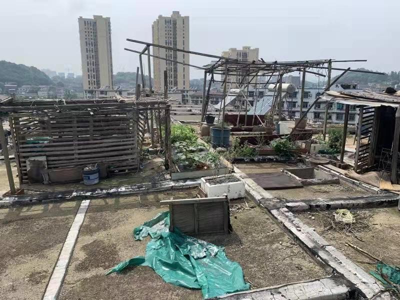 整治行动前,工作人员按照前期的摸底调查表上门对责任人进行宣传劝导,要求其自行处理圈地占用的物品、种植的蔬菜以及乱搭乱建的棚子等。整治行动以劝导为主、强制执法为辅的原则进行文明执法。因辖区多为老旧小区,楼栋基本无电梯,工作人员只能将清理后的杂物垃圾用袋子装好,一袋一袋从7楼搬到1楼。经过大家一上午的共同协作,共计整治月桂小区两处楼顶平台“圈地占用”,拆除违规搭建100余平方米,清理泡沫箱种植蔬菜100余平方米,清运各类杂物垃圾4车等。
