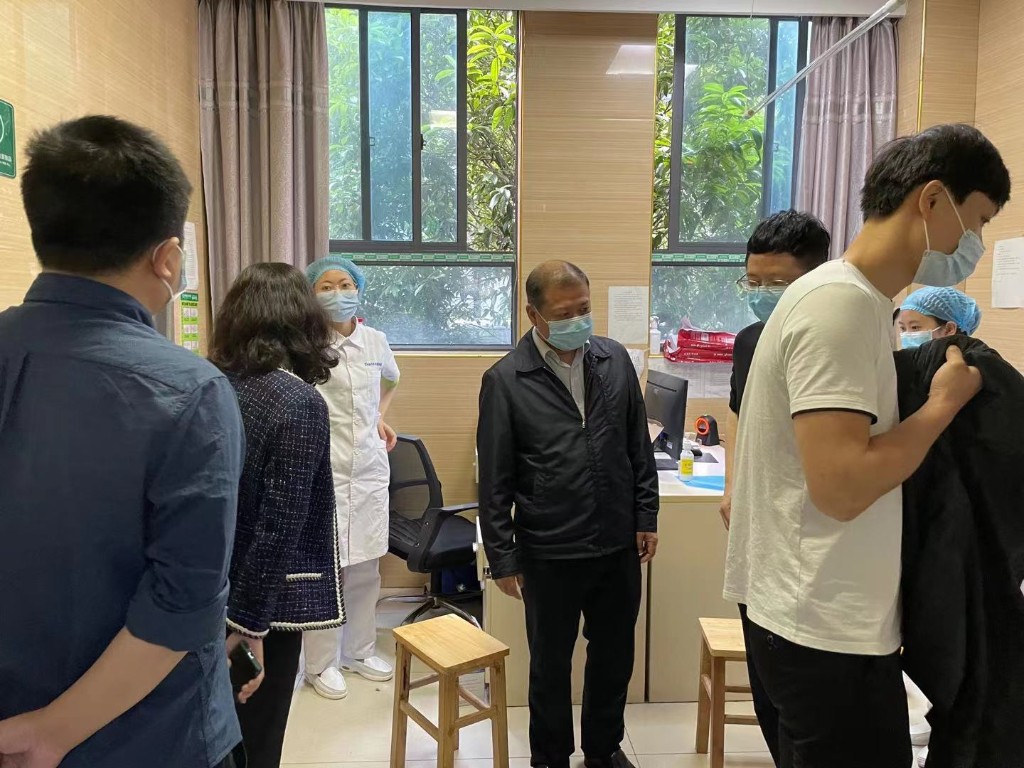 5月20日,市卫健委党委委员、市疾控中心主任龙术国带队来荷塘区督查新冠疫苗接种工作情况,副区长罗曼,区政协副主席、区卫健局局长冯晓陪同。