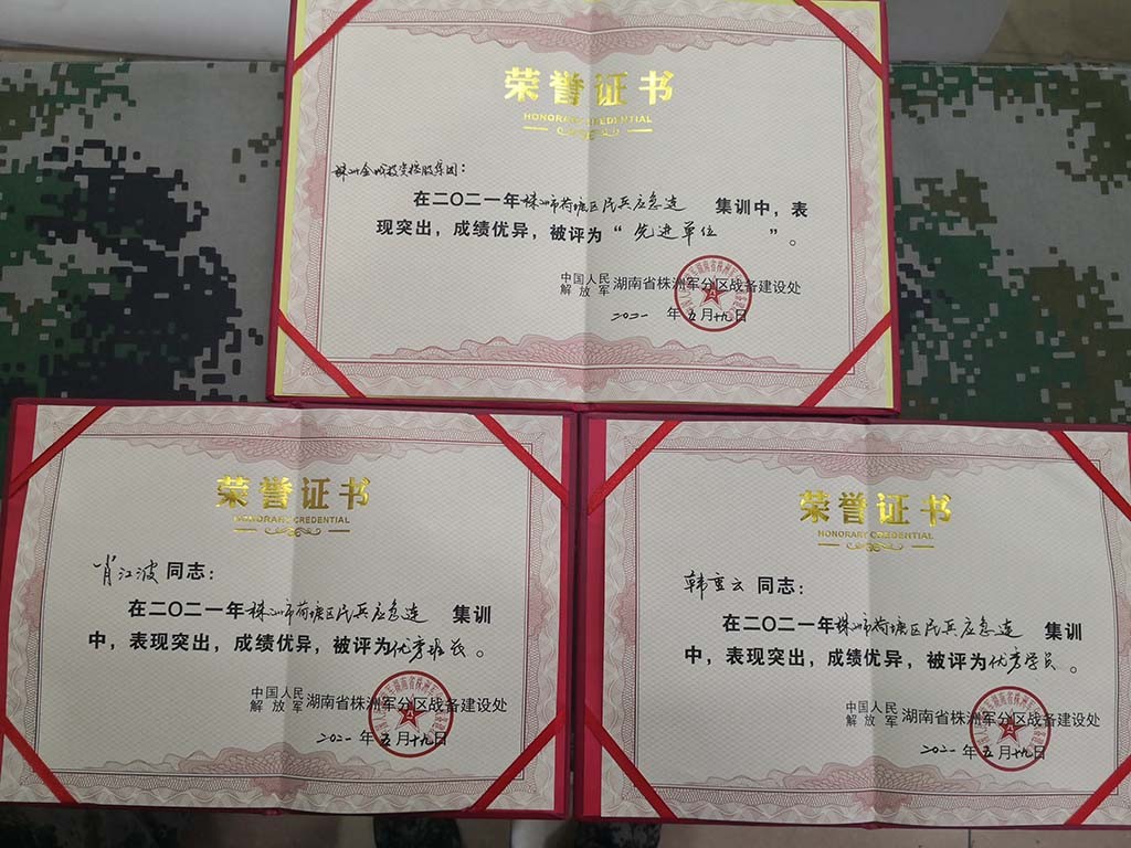 5月19日,为期12天的集训圆满完成,金城集团员工在此次民兵应急连集训中顺利通过各项考评,为集团拿下“株洲市荷塘区先进单位”荣誉证书。其中石斌、孔飞来两人获评“株洲市最美民兵”荣誉称号、肖江波获得“优秀班长”、韩重云获得“优秀学员”荣誉称号。