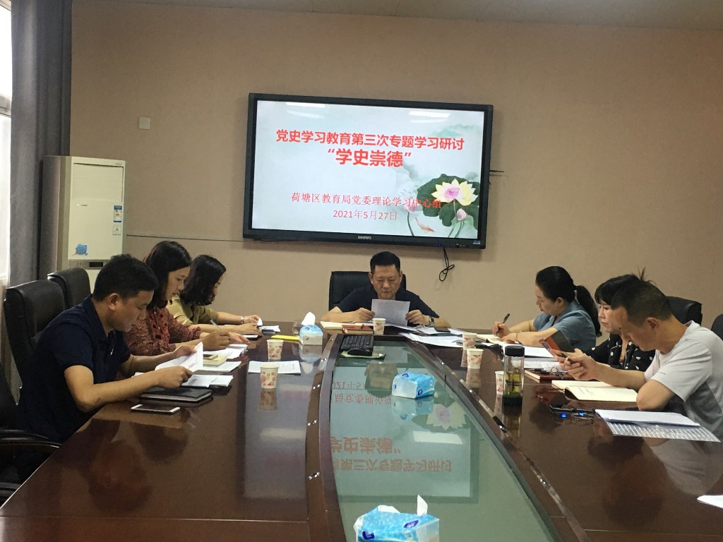 5月27日上午,荷塘区教育局召开党委理论学习中心组学习会议,集中开展党史学习教育第三次专题学习研讨。局党委书记、局长提名人选周波主持会议。局党委理论学习中心组成员参加会议。