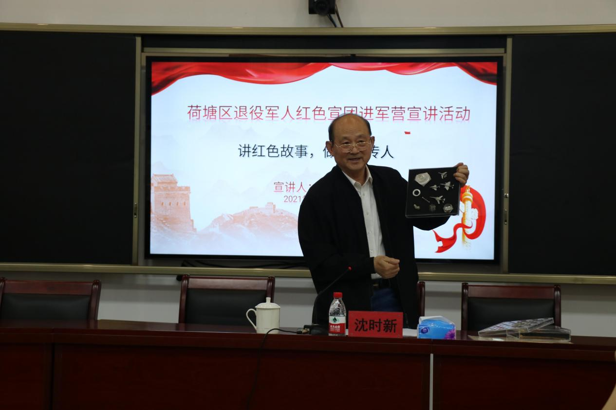 为庆祝中国共产党建党100周年,荷塘区退役军人事务系统深入开展党史学习教育。5月28日下午,区退役军人事务局联合武警荷塘中队共同开展红色宣讲进军营活动。此次活动邀请的是越战老兵沈时新,今年已经77岁的沈老于1963年应征入伍,1965年随部队奔赴越南执行援越抗美防空作战任务。