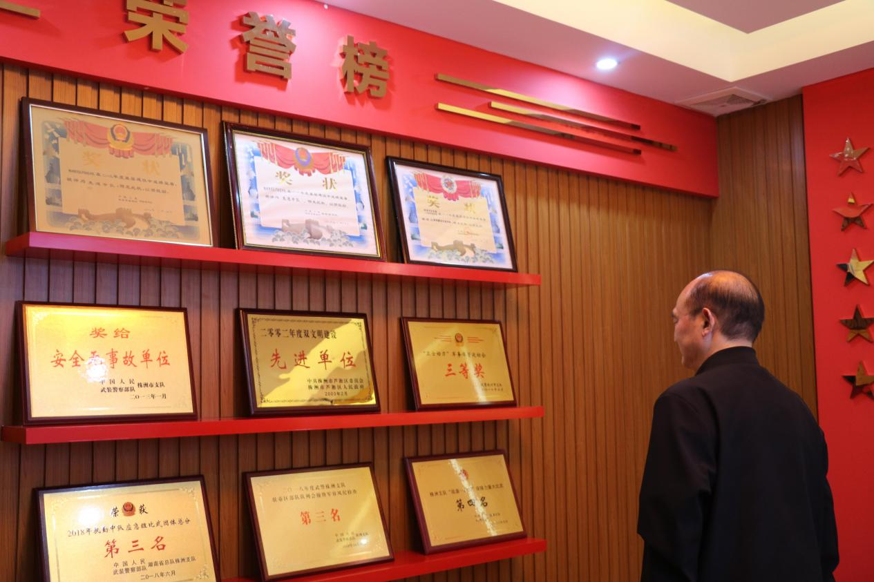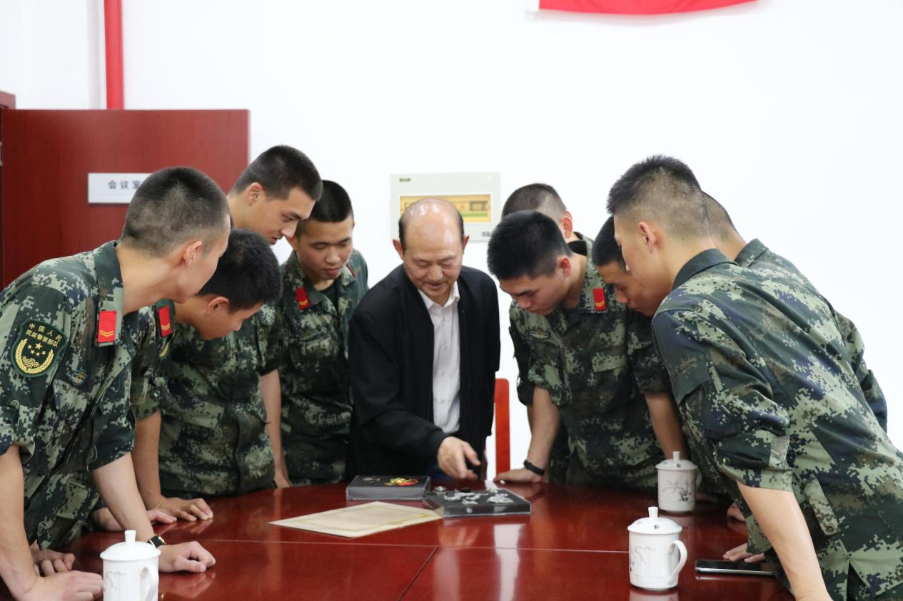 活动结束后,沈老在武警官兵们的陪同下,参观了军营。在参观部队荣誉馆时,一面面锦旗,一张张珍贵的照片,一段段战斗的故事,让沈老仿佛回到了自己当年还在部队的时候,看到部队条件比以前更加舒适便捷,管理更加符合现代化、实战化要求,沈老不禁感慨部队变化之大,同时内心无比兴奋、欣慰和自豪。最后沈老和十几位今年刚入伍的浙江籍新兵在部队会议室开展了一场小型座谈会,祖籍浙江的沈老一边了解每名新兵入营后的思想状况和现实表现,一边鼓励他们在部队一定要牢记使命,牢记家乡人民的嘱托,不忘初心,安心服役,建功军营,以优异成绩向家乡父老报喜。