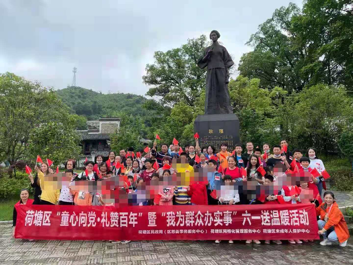 一大早,区民政局联合区慈善事务服务中心、区未成年人保护中心、区网格化管理服务中心的工作人员及志愿者,带着170余名留守儿童、困境儿童以及其家长,从荷塘区政府驱车前往秋瑾故居,让孩子们及家长近距离参观秋瑾前辈的生平事迹,学习革命先烈的伟大精神,在实地体验中传承红色基因,汲取奋进力量,激发爱国热情。