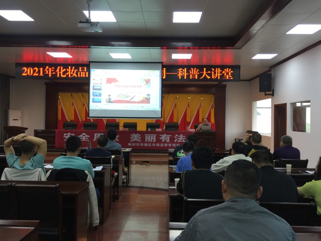 为进一步落实企业质量安全主体责任,提升公众对化妆品安全使用的认知水平,引导消费者科学合理地使用化妆品,5月31日下午,荷塘区市场监管局组织召开化妆品安全科普知识大讲堂,荷塘区各化妆品经营者、药店负责人、基层监管所执法人员等70余名参加培训。