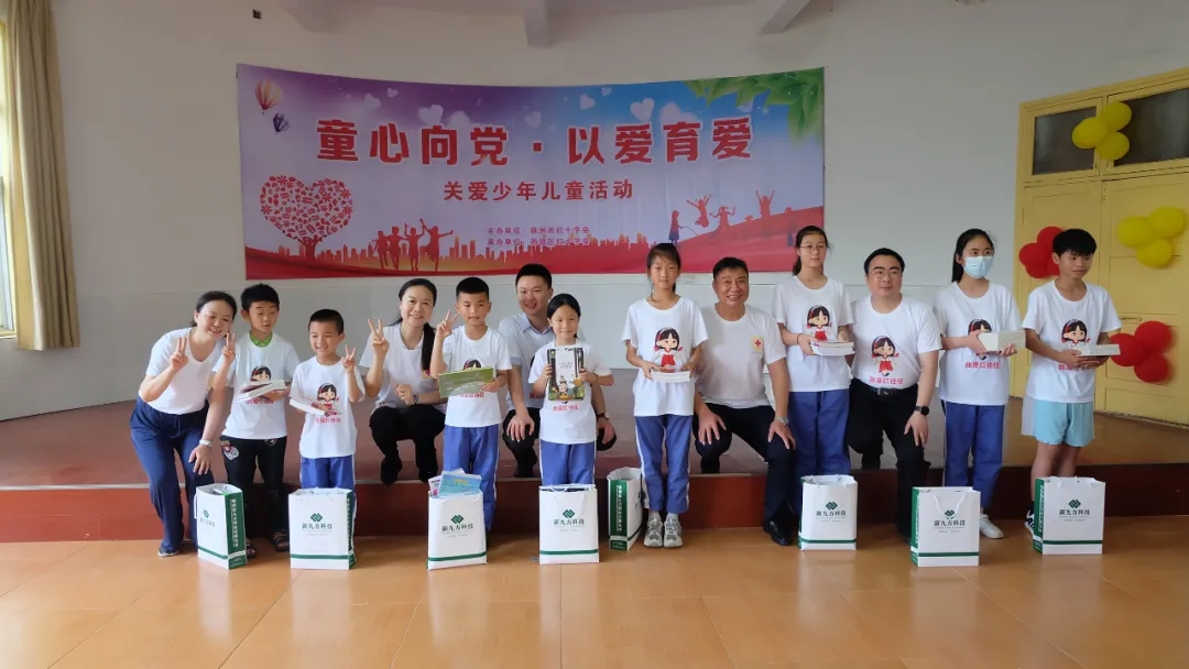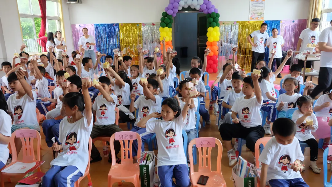 在现场,最让孩子们开心的是温馨生日会,父母外出打工后,与 留守儿童聚少离多沟通少,更是无法为孩子过生日,尤其是“六一”孩子们的节日,本次活动为仙庾镇66名儿童发放了助学金,爱心企业新九方科技公司代表邓博文等人捐赠了250余册图书,荷塘区红十字会贴心地为这些远离父母的孩子准备了生日蛋糕,寄语他们快乐学习、健康生活、阳光成长。