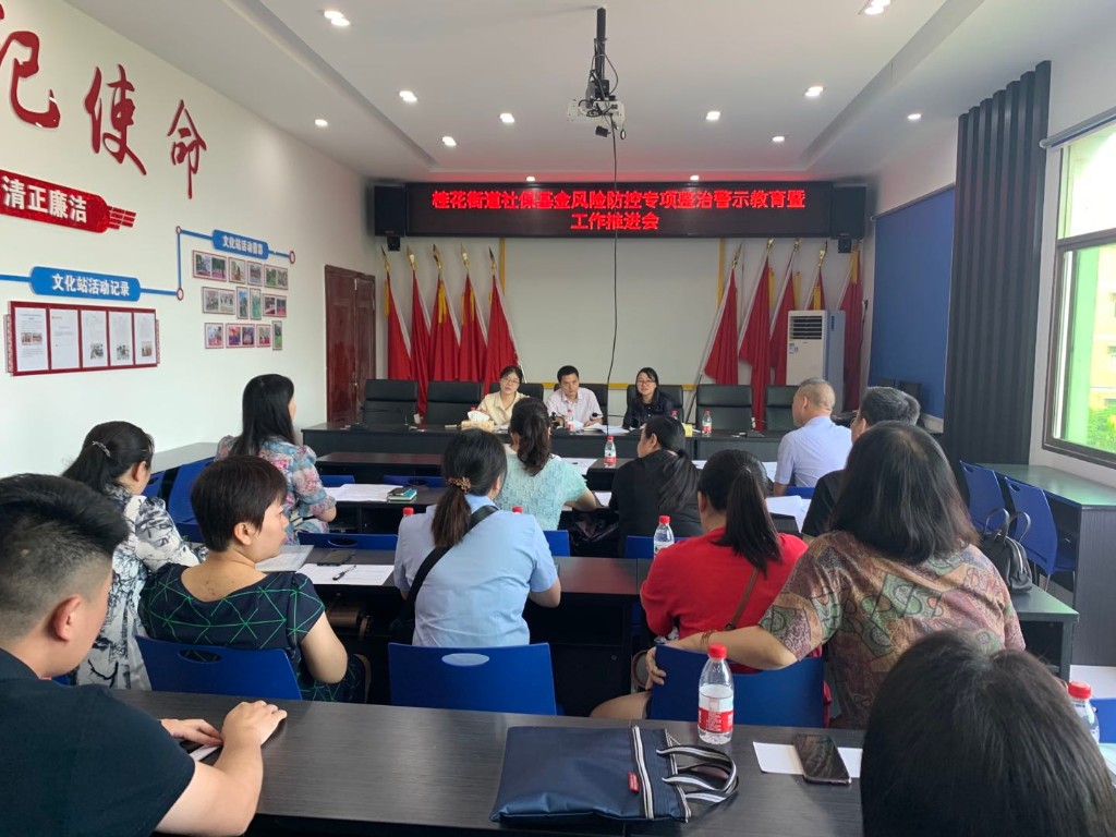 为认真落实区人社局关于社保基金专项整治行动的工作要求,防范化解社保基金重大风险行为,6月9日上午,桂花街道召开了社保基金风险防控专项整治警示教育暨工作推进会。桂花街道党工委委员、纪工委书记颜建利,桂花街道办事处副主任陈静出席会议,会议由桂花街道劳保站站长陈春贵主持,街道及各村(社区)书记、劳保专干参加会议。