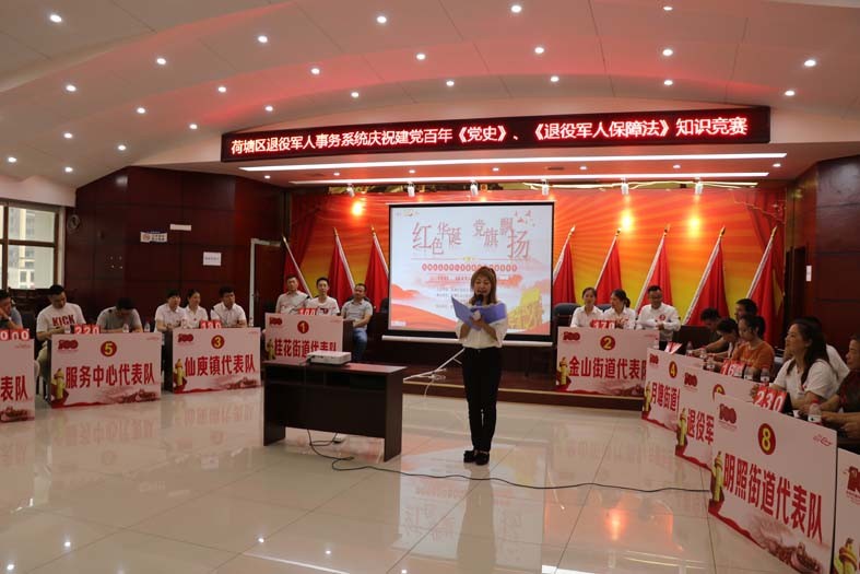 百年征程波澜壮阔,百年初心历久弥坚。时值中国共产党建党一百周年华诞,恰逢我国第一部关于退役军人的法律《退役军人保障法》的出台实施,为了进一步推动系统党员提高认识、统一思想,营造学习新时代党建理论和习近平新时代中国特色社会主义思想的浓厚氛围,6月10日下午,在雄壮激昂的红歌歌声中,由荷塘区退役军人事务局举办的“红色华诞·党旗飘扬”《党史》、《退役军人保障法》知识竞赛正式拉开序幕。区委宣传部副部长唐杜、区退役军人事务局党组书记、局长陈靖、金山街道党委副书记、办事处主任万景出席活动。