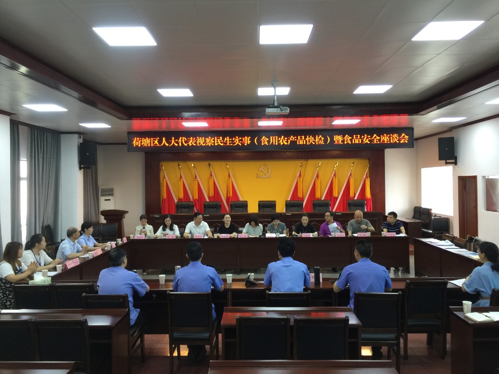 在随后的座谈会上,监督组听取了区市场监管局局长罗炽威就流通领域食用农产品快检暨食品安全工作情况的汇报。会上提出一是加强食品安全源头治理,二是强化食品安全重点领域监管,三是严格把握食品安全防控风险,四是严厉打击食品安全违法行为。我区在全市率先开展以区级为单位的快检服务,截至当天,共检测33445批次,不合格样品312个批次,合格率93%。其中,市本级统筹的多个快检室共检测29220批次,不合格样品292个批次,合格率92%;区本级统筹的多个快检室共检测4225批次,不合格样品20个批次,合格率99.52%。