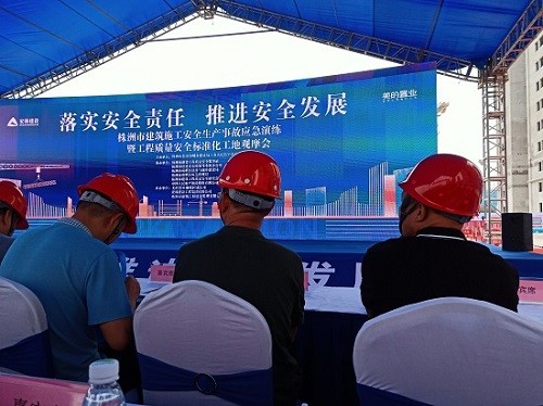 为响应2021年6月第20个全国“安全生产月”活动,提高建筑工地现场施工人员安全生产意识及应急救援知识,增强项目应对各种突发事件的应变能力,6月18日上午,荷塘区住建局在美的.公园里项目一二期施工现场以“落实安全责任,推进安全发展”的主题,举行建筑施工安全生产事故应急演练暨工程质量安全标准化工地观摩活动。活动由株洲市住建局主办,荷塘区住建局协办,美的置业和宏林建设公司承办,株洲市住建局党组书记谭智勇、株洲市荷塘区副区长刘必林,株洲市建设工程质量安全监督站站长郭峙、株洲市建设工程质量安全监督站党委书记骆文玲、株洲市住房与城乡建设局质安科科长黄天亮、美的置业湘中公司总经理王志鸿及宏林建设工程集团有限公司总经理包洪兴出席活动并讲话,全市各区住建部门分管施工安全的领导及质安监督机构主要负责人及分管质量、安全生产负责人;全市二级及以上总承包施工企业负责人及分管质量、安全生产负责人,各监理企业和项目施工企业的主要负责人,共计150余人参加本次活动。