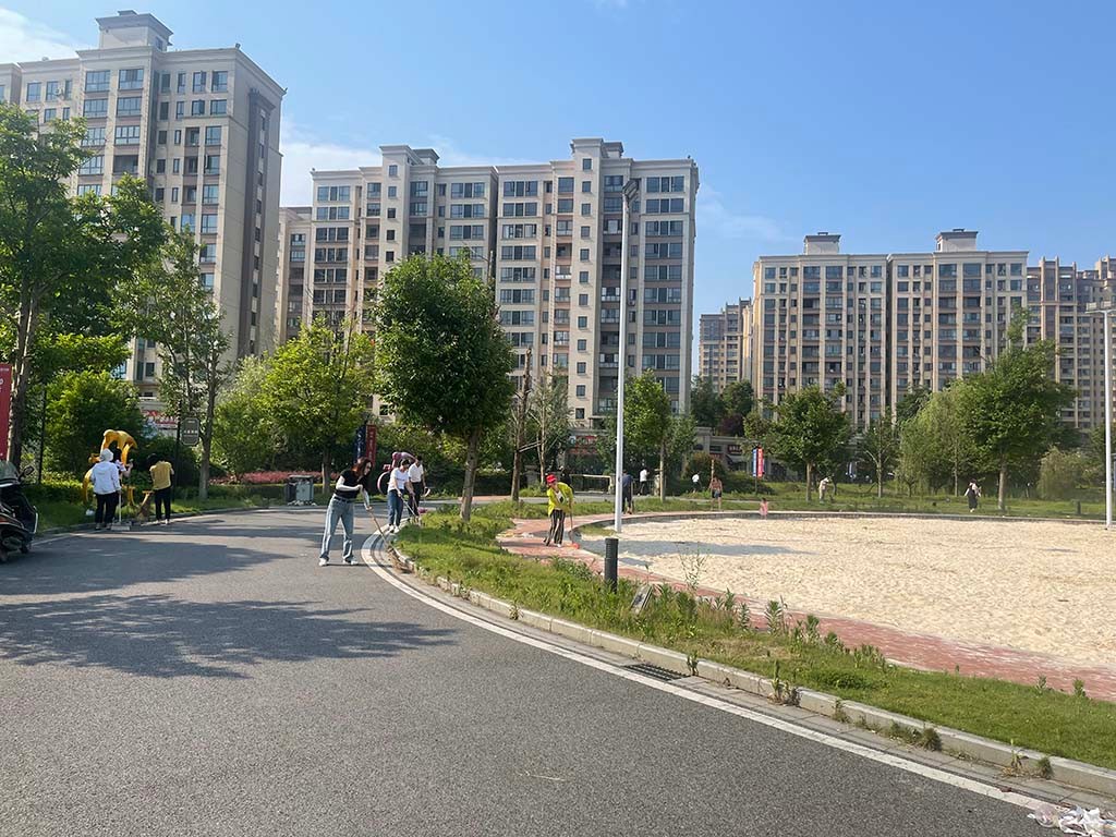 大家拿着扫把、簸箕,认真清扫着运动公园道路两旁的生活垃圾,清理了篮球场、足球场散落的树叶,同时用垃圾钳认真清理草丛和沙滩池里的垃圾碎片,劳动的身影闪烁在运动公园的每一个角落,即使艳阳高照,汗水湿透了衣服,大家也是热情满满,乐在其中,经过大家的一番努力,运动公园恢复到了整洁干净的样子。