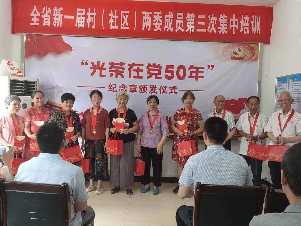 为庆祝中国共产党成立100周年,进一步增强老党员的荣誉感、归属感和使命感,6月18日上午,西子社区党委举办“光荣在党50年”纪念章颁发仪式。为10名有着50年以上党龄的老党员代表佩戴纪念章并送上贺卡,老党员们接过沉甸甸的纪念章,脸上洋溢着幸福的笑容。