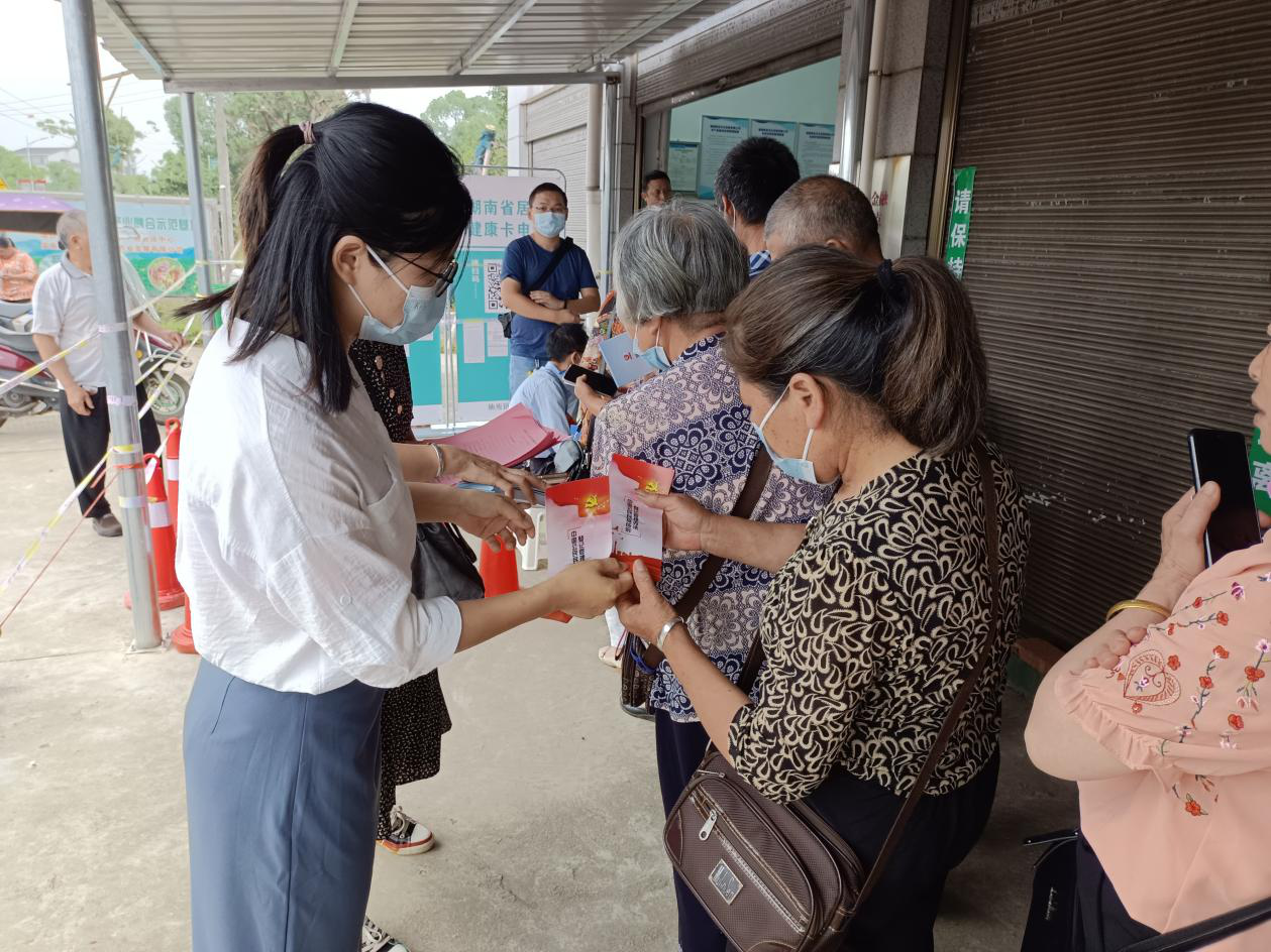 6月22日,仙庾镇在蝶屏村疫苗接种点和黄塘集市开展集中宣传统战政策法规活动。
