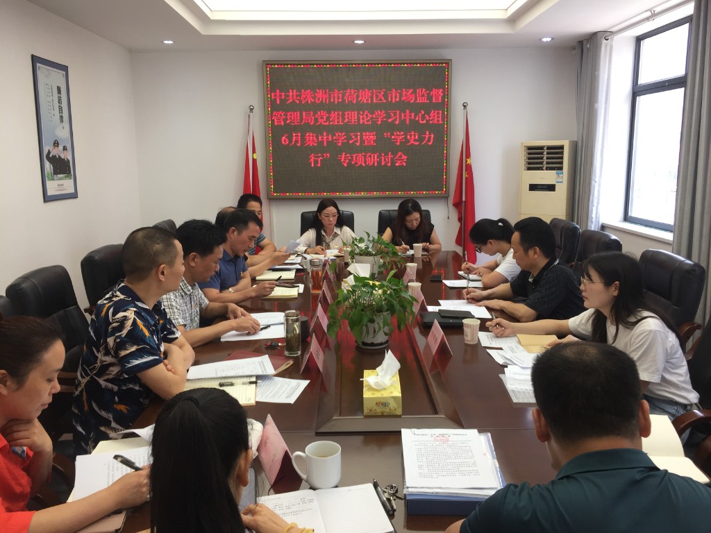 6月23日,中共荷塘区市场监管局党组召开党史学习教育“学史力行”专题学习暨理论学习中心组(扩大)学习研讨会。会议由党组书记郭维主持,区委党史学习教育巡回第三指导组到会指导,理论中心组成员参加、部分股室负责人和支部书记列席会议。