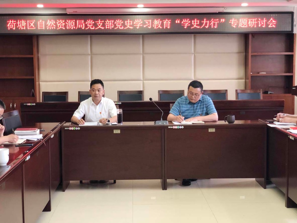 6月24日,荷塘区自然资源局党支部召开党员大会暨“学史力行”专题研讨会,在党的百年华诞即将到来之际,为全体党员过了一次洗涤心灵的政治生日,会议由支部书记李荣主持。