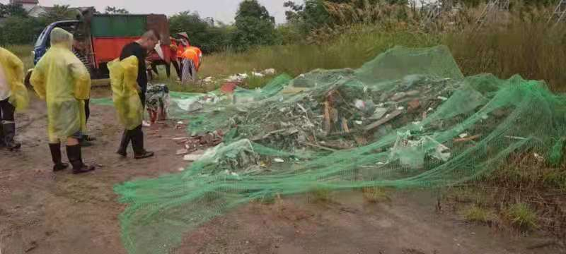 为迎接29日下午市城市管理明检工作,针对区级部门在上午发现的辖区宋家桥村荷塘大道周边征收范围存在的环境卫生问题,宋家桥街道高度重视,立即行动,尽管天空下着大雨,但工作人员们披着雨衣,带着工具,立即赶到现场并迅速开展整治行动。工作人员分工合作,有的清理白色垃圾、杂物;有的配合着用防尘网覆盖建筑垃圾;有的正在把垃圾装上清运车,经过大家1个多小时的齐心协作,终于在市检前将垃圾、杂物全部清理干净,清理各类垃圾2车,用防尘网覆盖渣土垃圾100余平方米。