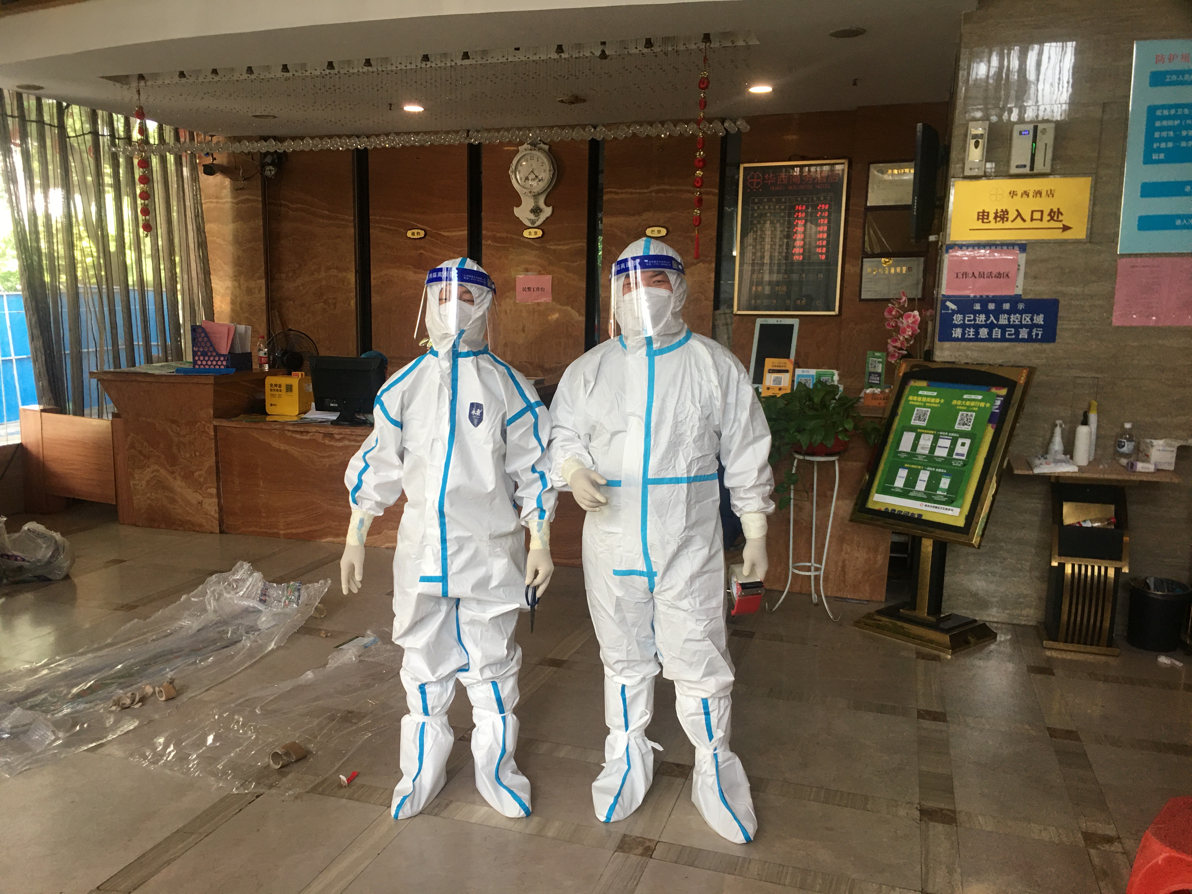 在收到被抽调至隔离酒店参与隔离设置与管理服务工作的通知后,面对着这样一份即将到来的任务重并且存在潜在风险的工作,他没有考虑个人得失,积极响应号召,逆行而上,义无反顾地挑起华西酒店隔离点的工作重任。隔离点是疫情防控战役的重要战场之一,工作繁杂、任务重,一天下来,都顾不上片刻休息,浑身湿透,就像洗过澡一样,但他一点怨言也没有,还总是自信满满说请领导和同事放心,他保证完成任务。截止到目前,这已是他坚守在隔离酒店的第10天。