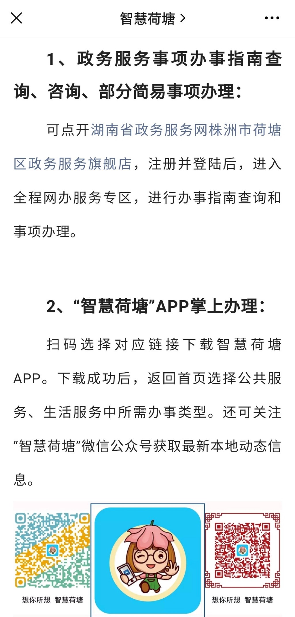 “智慧荷塘”微信公众号公示的线上办理渠道