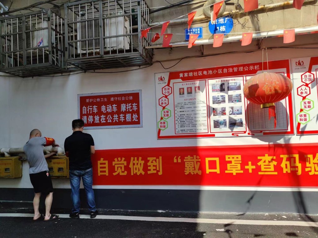 为确保小区有人员值守、有物资保障、有宣传氛围。区物业服务指导中心联系街道社区发动热心志愿者积极参加小区值守,并为志愿者们送去所需的防疫、防暑物资;同时,在小区值守点张贴“行程码、健康码”标识、悬挂疫情防控宣传横幅,确保防疫工作管控到位、宣传到位。