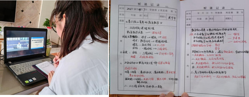 云端培训,学习要求严格。各学科教研员对老师学习提出了严格且具体的要求,要求每一位老师做学习笔记,自愿上交心得体会,签到签退中间点名互动,评比优秀参培单位和优秀学习个人,既检测了培训的效果,又培养了老师们认真负责的专业态度。