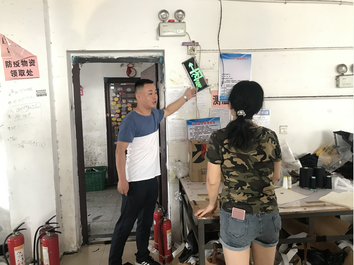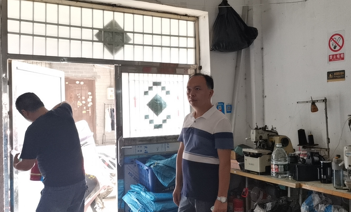 在交叉检查中,各组重点对各服饰加工厂消防安全责任制是否落实、消防通道是否畅通、消防设施是否配备齐全、厂区是否存在吸烟现象、电动自行车是否规范停放和充电、智慧用电系统运行是否正常等情况进行了逐一细致的检查,对检查发现的安全隐患问题一一进行登记,并现场责令加工厂负责人进行整改。同时,各组还对各个服饰加工厂的仓库进行了检查,工作人员重点查看了仓库堆放的货物情况,是否存放有危化品、易燃易爆品,提醒加工厂负责人加强消防安全管理,平时做好自查自检工作,消除安全隐患,防患于未然。