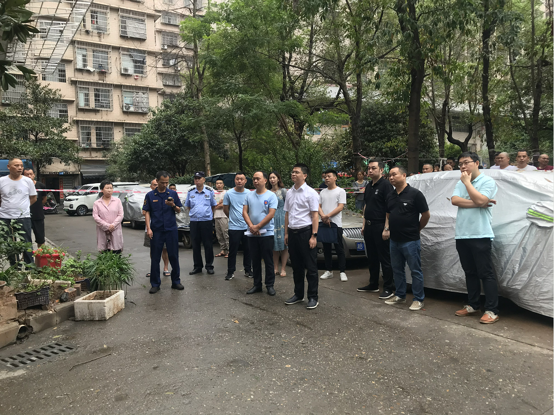 下午15时,市场服务中心应急救援队员、月塘街道相关工作人员在荷塘区银基小区13栋楼下集结完毕。演练开始前,由市场服务中心消防服务办负责人李聪介绍了此次演练的火情设定和演练流程,随着陈佳敏一声“按计划进行消防救援疏散演习”,演习正式开始。