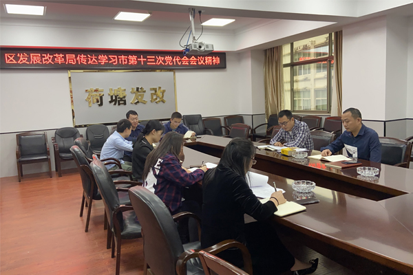 10月9日,区发改局局长唐斌组织干部职工学习中国共产党株洲市第十三次党代会精神。