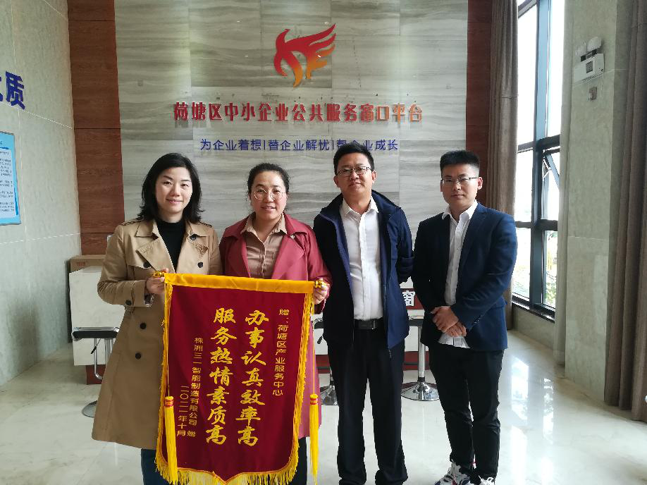 10月13日,荷塘区产业服务中心收到株洲三一智能制造有限公司送来的印有“办事认真效率高,服务热情素质高”字样的锦旗,这已是今年以来中心收到的第四面锦旗。