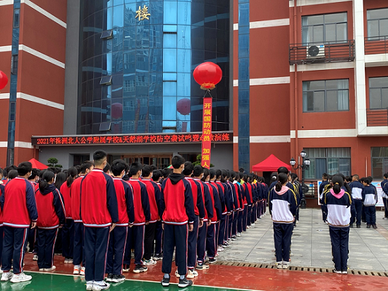 演练现场,随着预先警报响起,株洲北大公学和天鹅湖学校各位老师立即到达指定岗位,并指导学生迅速有序撤离教学楼。各班两人一队,快速奔跑到达指定位置,以班级为单位,迅速站队,清点人数并上报现场总指挥。整个疏散过程指挥得当、反应迅速、井然有序。