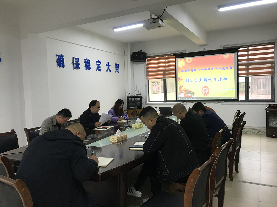 为确保支部主题党日制度化、常态化,持续推进党的建设,11月5日下午,荷塘区市场服务中心党支部结合实际,在三楼会议室开展了11月份支部主题党日活动,此次活动由市场服务中心党组书记、主任胡嵩主持,全体党员参加。
