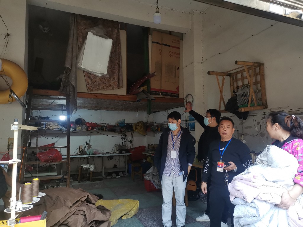 富家垅片区中,沿街有数十家门店属于典型的“三合一”场所,大多数商铺将一楼用于生产经营,阁楼用于生活兼仓储,且过道狭窄,隔板基本为木质材料,常伴有店内吸烟、私拉电线等现象。因周边门店相连,人员较为密集,一旦出现火情,极易引发大面积火灾,不易逃生,从而造成重大损失和伤亡,存在很大的安全隐患。