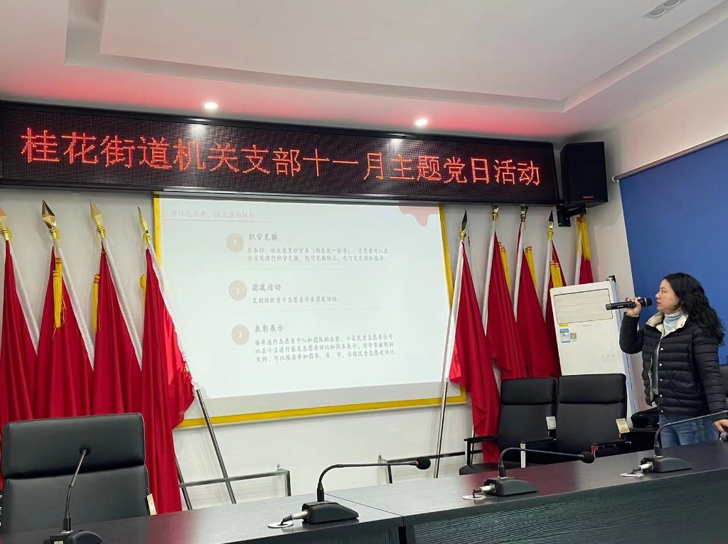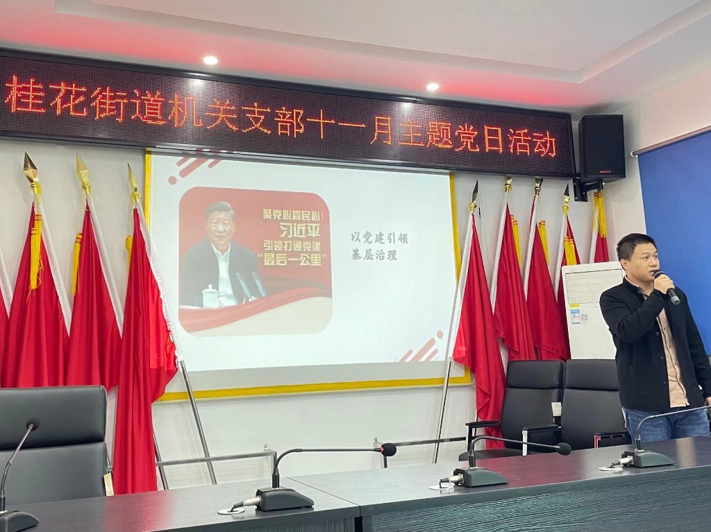 11月26日,桂花街道结合主题党日活动召开了基层治理工作思路分享会,五名党员干部逐一从基层治理工作的认识、方法和实践等方面进行了基层治理工作思路分享,街道领导班子及全体党员职工干部参会,会议特别邀请各社区党建专干作为评委参加。