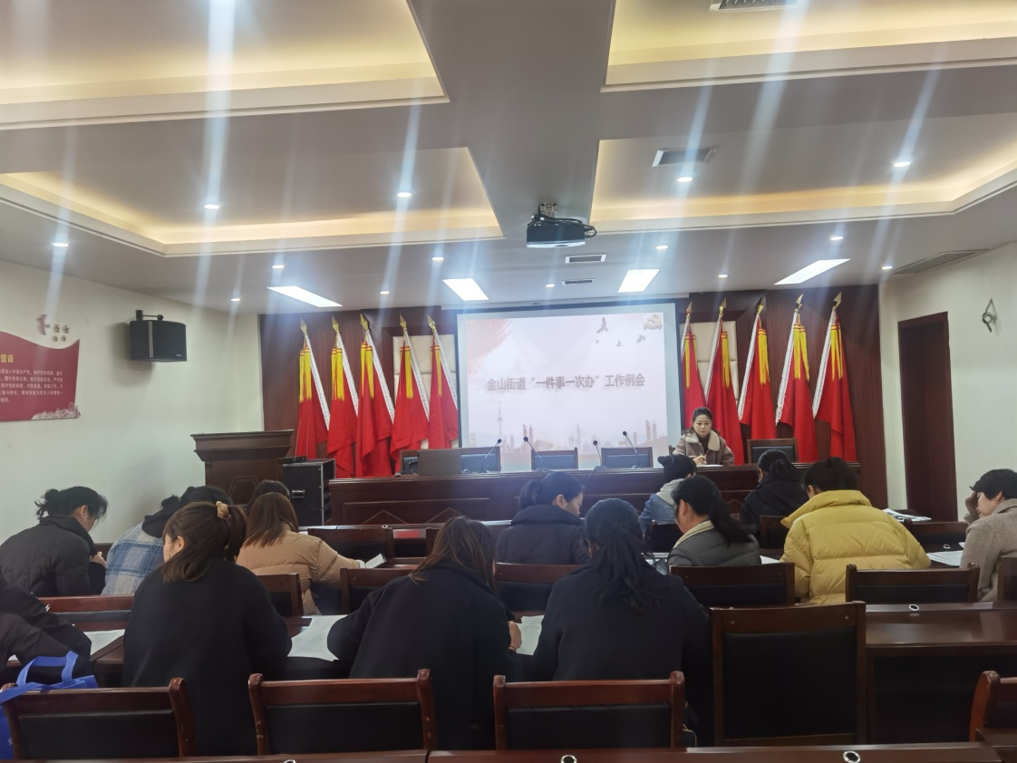 为加强一次事一次办工作人员之间的交流,提高办事效率,12月23日下午,金山街道召开"一件事一次办"工作例会,会议由办事处首席代表罗丹主持,便民服务大厅工作人员、各村(社区)专干参加。