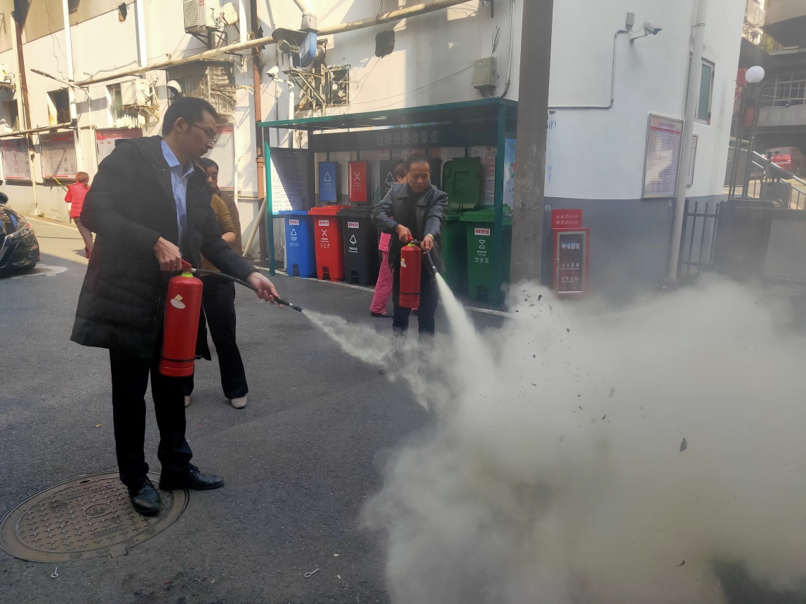 在听完疫情防控的讲解后,活动现场组织在座的居民进行消防演习,消防演习活分为知识讲解和消防实践两个部分。首先由消防负责人向大家讲解火灾预防、火灾抢救、自救逃生等基本消防知识,通过一系列消防安全典型案例的讲解,深入剖析火灾发生的原因,敲响消防安全警钟,提高大家的防范意识。随后,消防工作人员又组织开展了消防演练活动。培训员向现场观摩人员详细介绍灭火器的使用方法及注意事项,强调灭火时机、人员站位等细节性要求,学完之后,观摩人员分批次进行了实操演练,整个演练过程严肃、紧张、安全有序进行,成功达到预期效果。