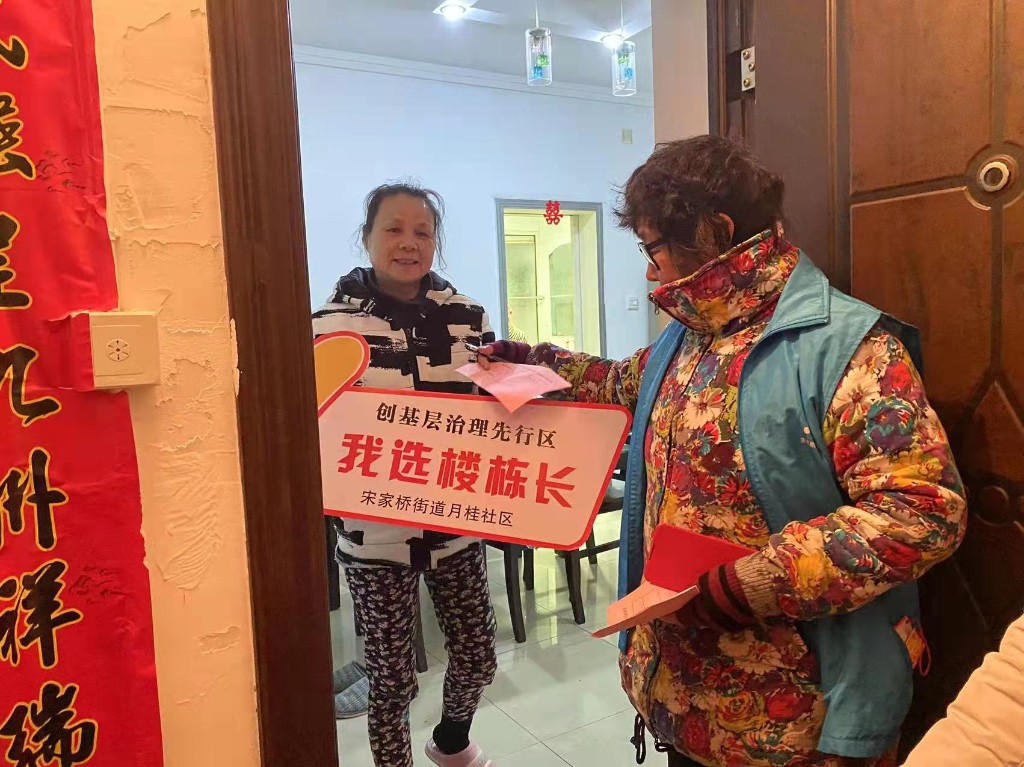 据悉,宋家桥街道芙蓉社区、月桂社区、四三零社区“两委”严把招募“关口”,通过征集报名、选优推优、上户走访、现场选举、公示确定五个步骤,在铁四院、月桂花园、东风村等4个小区每个楼栋推选楼栋长,推动构建党建引领居民自治新格局。