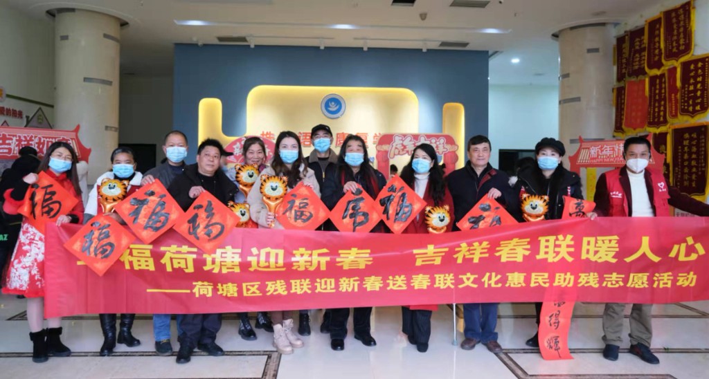 日月其迈,时盛岁新。2022的新年钟声即将敲响,在辞旧迎新之际,为进一步将“我为群众办实事”工作走深走实,加强基层残疾人文化建设,传承新春佳节传统文化,丰富广大基层残疾人在重大节假日期间的精神文化生活,12月31日上午,荷塘区残联联合株洲市聋人协会、荷塘区残疾人书画协会一行走进语翔康复学校,与师生家长们开展了一场温馨愉快的“幸福荷塘迎新春·吉祥春联暖人心”文化惠民助残活动。荷塘区残联党组书记、理事长蔡灵敏,荷塘区残联党组成员、副理事长彭文瑾,荷塘区残联原副理事长张勇应邀出席。