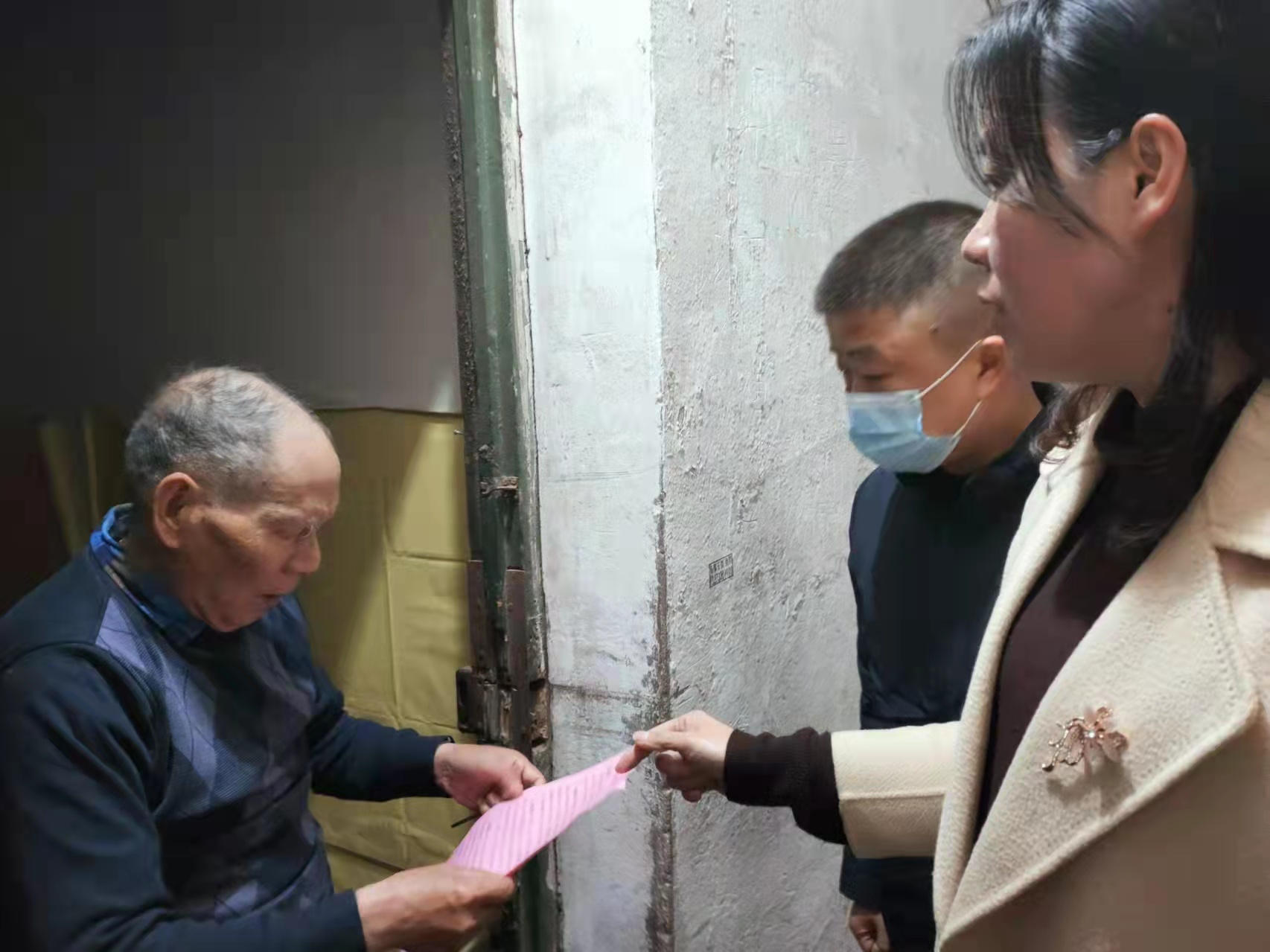1月5日,茨菇塘街道组织街道各部门、各社区积极行动,严格按照认识到位、宣传到位、排查到位、整改到位工作要求, 通过召开楼栋长消防安全专题会议、在居民楼栋单元门口张贴安全防火警示通知、排查辖区企业和门店消防安全隐患、入户上门送达"至居民的一封信"、排查独居老人和残疾人家庭用火、用电、用气安全情况等方式从严从实落实消防安全责任制,进一步加强防范化解消防安全风险能力,全面推进辖区2022年消防安全"敲门行动"工作。