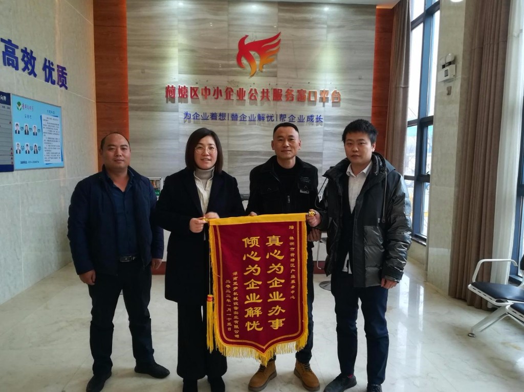 1月14日下午,湖南三尹机械设备实业有限公司负责人送来一面“真心为企业办事,倾心为企业解忧”的锦旗,感谢荷塘区产业服务中心在项目行政审批帮代办方面所提供的热情服务。