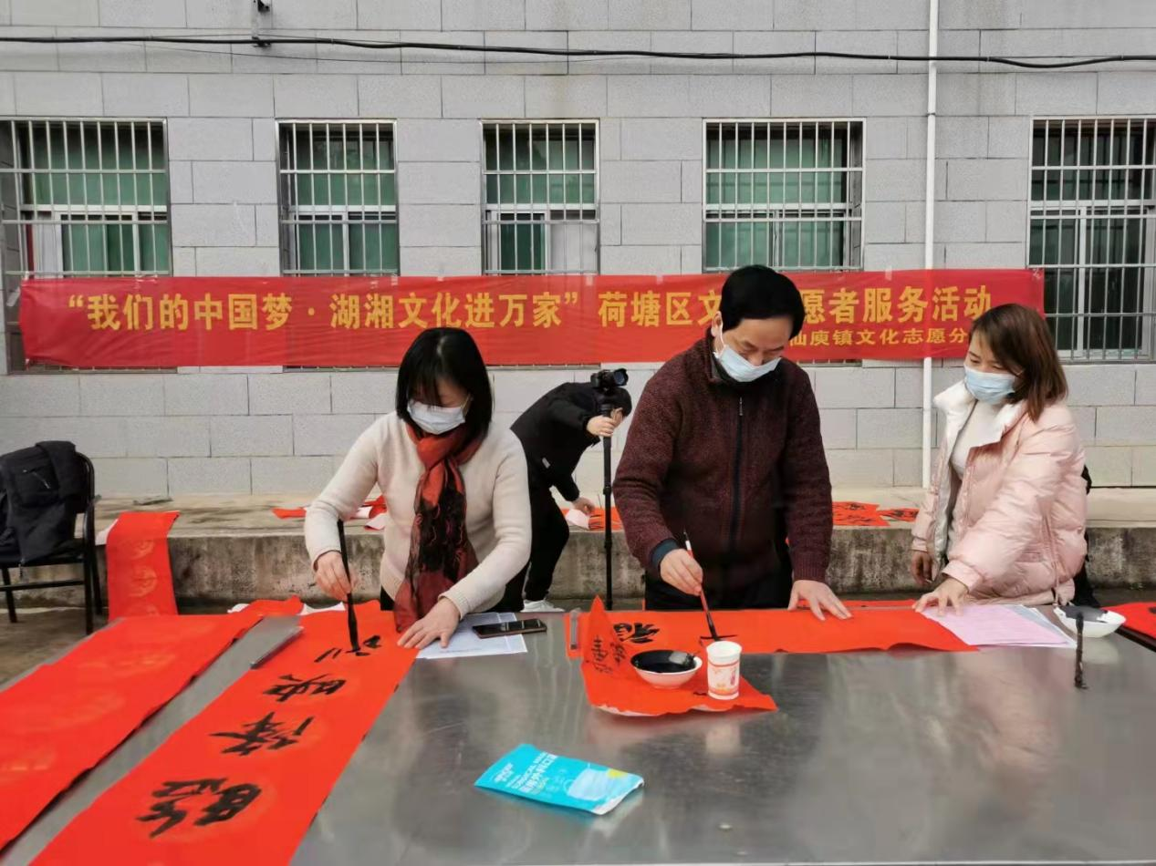 为丰富广大农村群众的文化生活,营造新春喜庆的文化氛围。1月18日下午,仙庾镇以传承中华传统文化,营造喜庆、祥和的节日氛围为目标开展了“我们的中国梦▪湖湘文化进万家”送春联活动,免费为辖区居民发放春联,为大家送上新春祝福。
