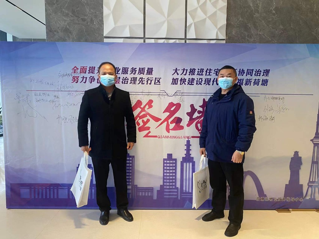 会前,物业服务企业代表来到签名墙签名,纷纷表示将全面提升物业服务质量,大力推进住宅小区协同治理,努力争创基层治理先行区,加快建设现代化幸福新荷塘。