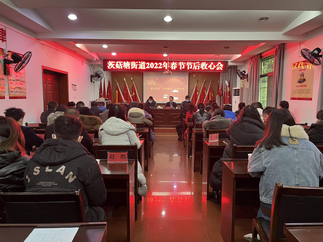 新年伊始、万象更新。春节长假过后,为确保切实做到人员归位、思想回位、工作到位,2月7日,茨菇塘街道迅速召开2022年春节节后"收心会",重申相关工作制度和纪律作风,帮助全体干部职工尽快收心归位,迅速步入工作新常态。街道党政班子领导、各社区书记、站办所负责人参加会议。