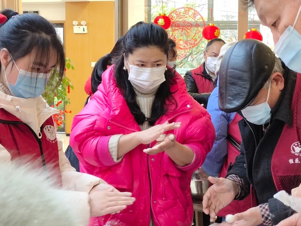 “平时家里都是妈妈包汤圆,现在自己动手包,感觉难度系数很高。”汤圆好吃,包汤圆却不容易。这一边,第一次包汤圆的小志愿者经验不足,每个大小都不一样,包了好几个才渐渐掌握门道;那一边,五十多岁的志愿者张阿姨可谓驾轻就熟,左手放馅右手揉面,包出来的汤圆个个圆润Q弹。不管大小,不论外观,每一颗汤圆承载的,都是节日的喜悦、对幸福生活的追求。