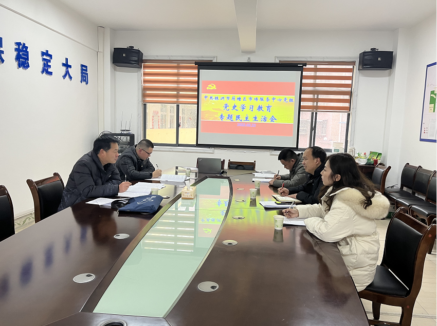 2月22日,荷塘区市场服务中心党组召开2021年度党史学习教育专题民主生活会,会议由党组书记、主任胡嵩主持,全体领导班子参加了会议,区委党史学习教育巡回指导组组长黄继刚到会指导并点评。