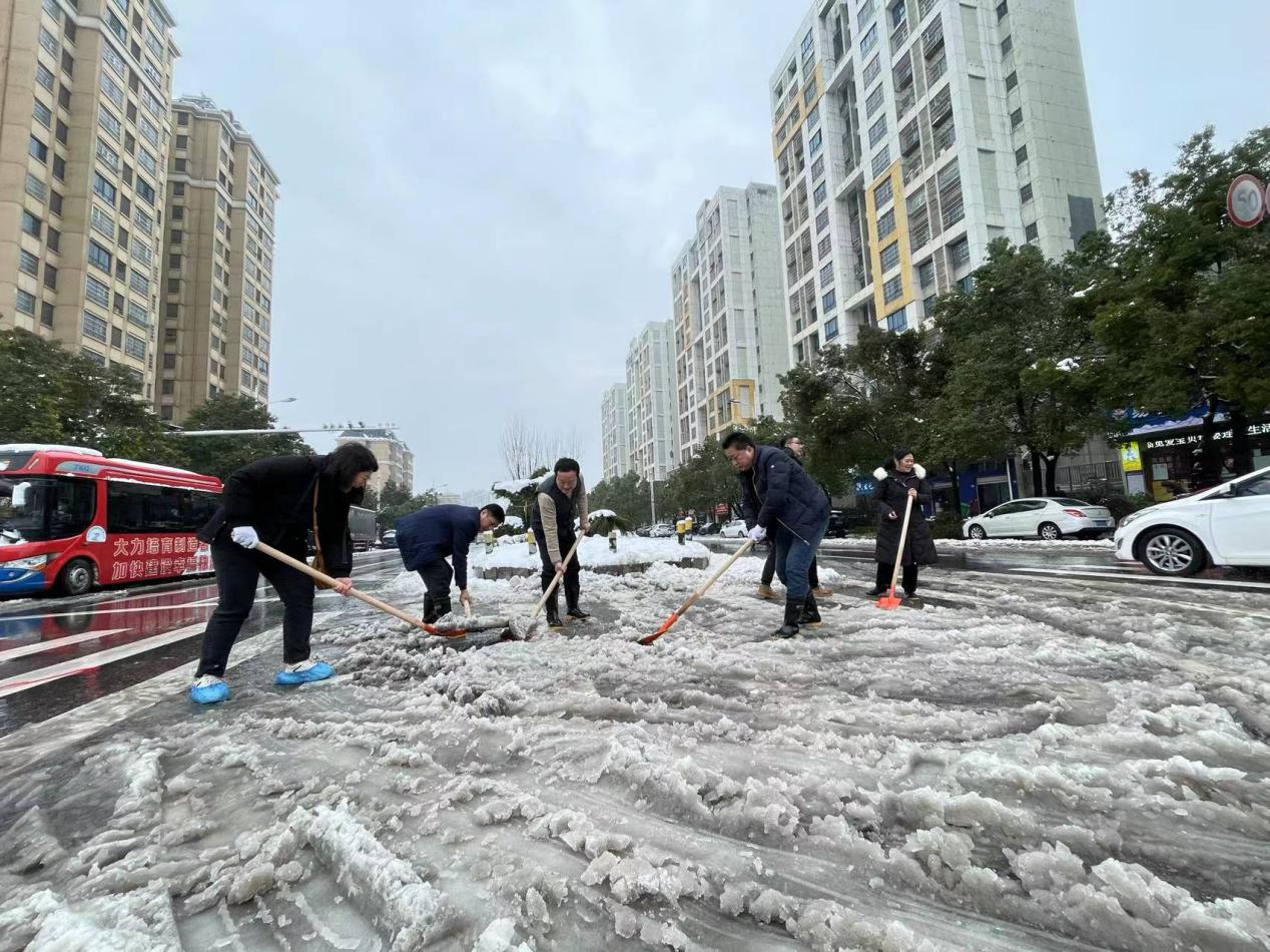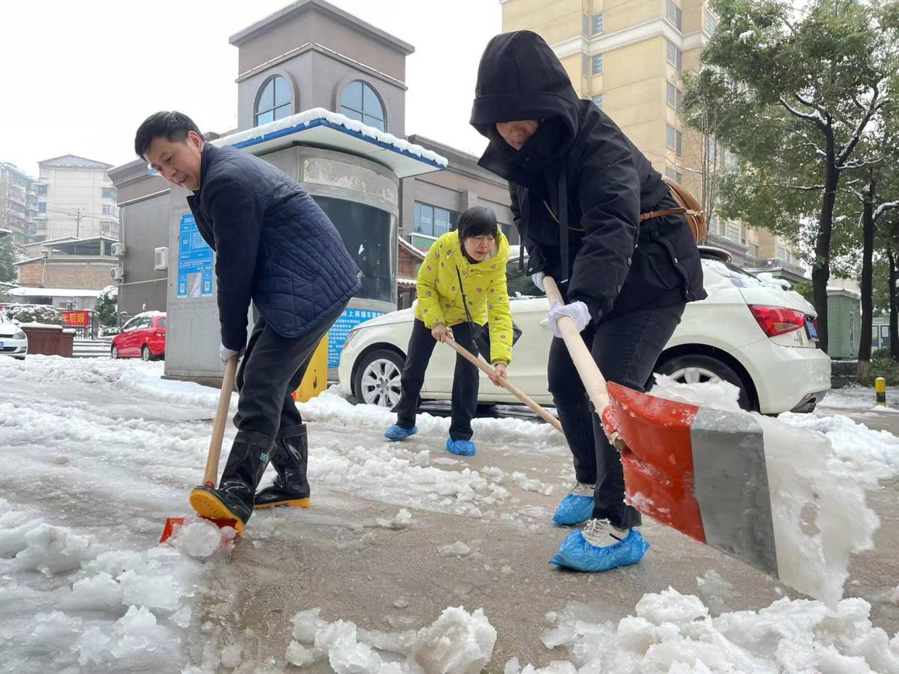 近日,株洲市启动低温雨雪冰冻灾害Ⅲ级应急响应。一场大雪,给市民的出行带来不便。为了确保雨雪冰冻天气下,居民安全、便利出行,23日清晨,区司法局党组书记、局长易东带队,带领全体干部到向阳广场清除道路积雪。全体干部积极行动起来,迅速投入到清雪工作中,不畏寒冷,干劲十足,有的用铁锹一锹锹铲、有的用扫帚一点点扫、有的把路上的树枝清除干净。