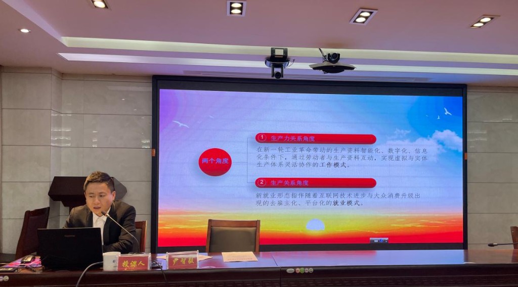 株洲市总工会基层工作部副部长尹智毅作新就业形态建会入会工作业务知识专题辅导,尹智毅从什么是新就业形态、新就业形态建会入会的条件、途径和怎样进行有效的后续管理四个方面进行了深入浅出的解读,为全区各基层工会下阶段的工作开展提供了强有力的理论支撑,具有很强的指导性和可操作性。