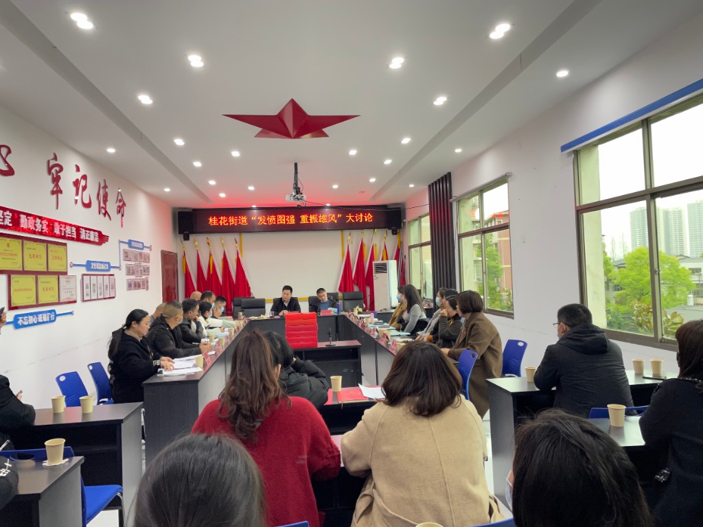 3月21日,桂花街道开展“发奋图强 重振雄风”大讨论暨理论学习中心组第三次集中学习。桂花街道党工委副书记、办事处主任张健主持,街道党政领导班子成员、各站办所负责人、村(社区)书记、街道年轻干部参加讨论。