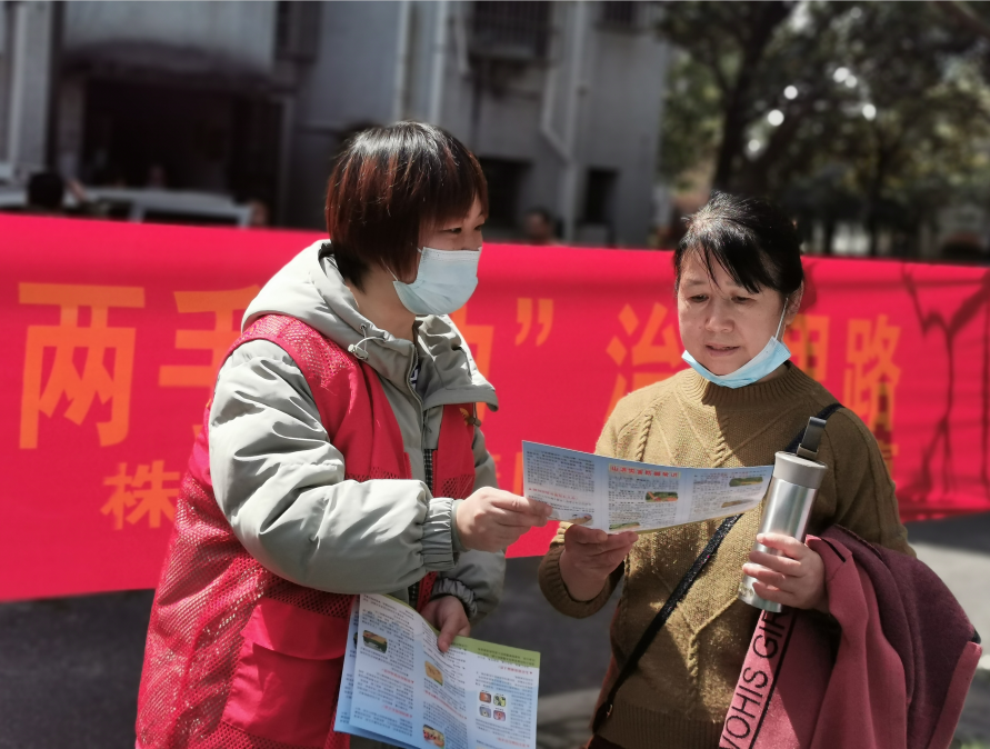 网格员向居民发放宣传手册