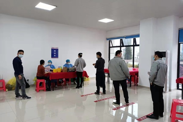 接种现场分为等候区、登记区、接种区、留观区等区域。现场接种前,医护人员都详细询问员工身体健康状况,认真核对接种信息,以确定是否接种,并告知接种完的注意事项,保证安全接种。留观区现场还配备了专业的医护人员和医疗设备,时刻关注疫苗接种后的反应,有效保障接种安全。接种当天,企业职工在工作人员引导下有序进场,严格按照一米线要求,等待接种疫苗。在现场医务人员及企业工作人员的默契配合下,接种速度快、效率高,有效避免了大量职工的排队等待。