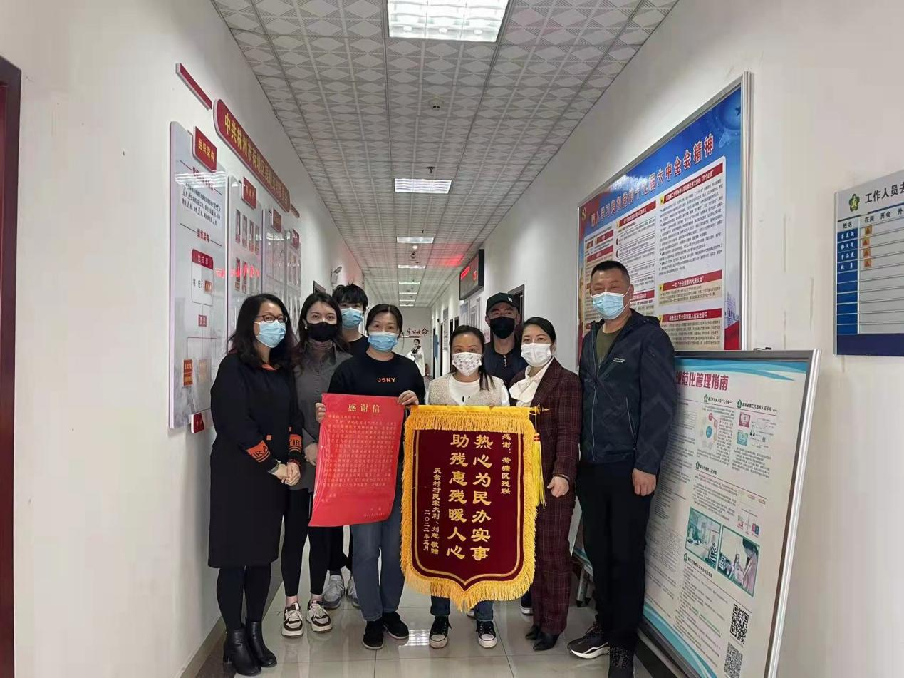 3月30日,宋家桥街道天台村、430社区重度残疾人宋大利和付支花的家属怀着无比感激的心情,将一幅锦旗和一封感谢信送到了荷塘区残联,区残联理事长蔡灵敏亲切接待。